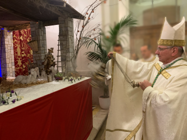 Questa sera facciamo la preghiera di saperci abbassare, umilmente, per raccogliere l’umanità di Gesù fatta di vagiti, di stalla, di estraneità, di fame, di viaggio.